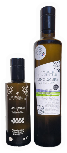 L'huile d'olive au gingembre est un mélange de plusieurs variétés d’olives et de gingembre frais broyés directement.