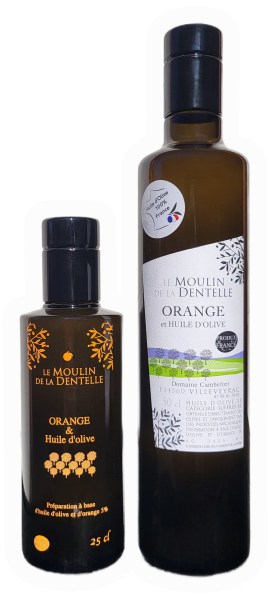 L'huile d'olive à l'orange est un mélange de plusieurs variétés d’olives et d’orange broyés ensemble.